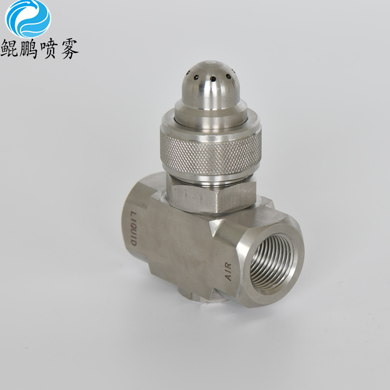 空氣霧化的設(shè)計特點 1:空氣霧化噴嘴特殊的內(nèi)部結(jié)構(gòu)設(shè)計能使液體和氣體均勻混合, 產(chǎn)生微細(xì)液滴尺寸的噴霧或粗液滴噴霧,通常通過增加氣體 壓力或降低液體壓力可得到更加微細(xì)(30微米左右)的液滴 噴霧,從而導(dǎo)致較高的氣體流率比。 可調(diào)形空氣霧化噴嘴能夠
