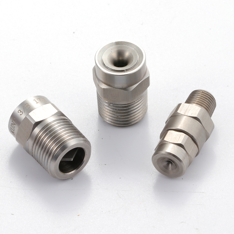 使用時(shí)產(chǎn)生實(shí)心錐形噴霧形狀,噴霧區(qū)域成圓形,噴霧角度為43-120度。 2、能在大范圍流量和壓力下產(chǎn)生分布均勻、液滴大小為中等到偏大的噴霧,葉片設(shè)計(jì)是其設(shè)計(jì)機(jī)理,并大而暢通的通道和先進(jìn)的噴流控制。 3、該噴嘴對(duì)于要求完全覆蓋一個(gè)區(qū)域的噴流應(yīng)用領(lǐng)域能發(fā)揮極佳的效果。 4、 BB系列金屬噴嘴為外螺紋接頭,B系列金屬噴嘴為內(nèi)螺紋接頭。